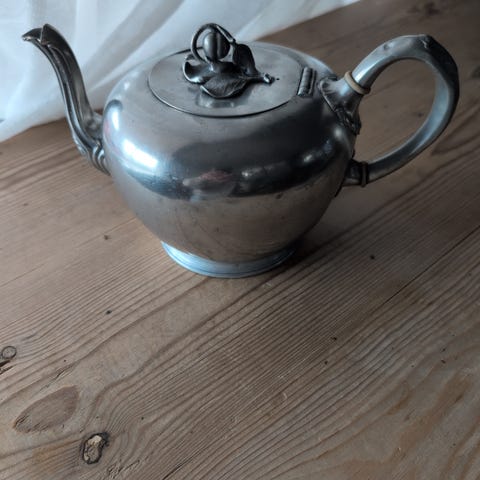 Ei flott te-kanne laget i empire stil av Martin Hall & Co (1854-1897).