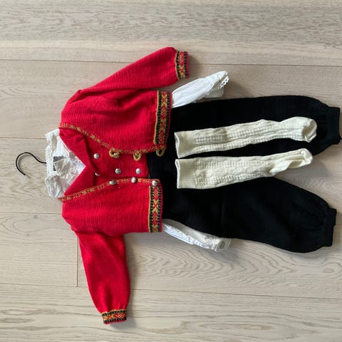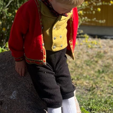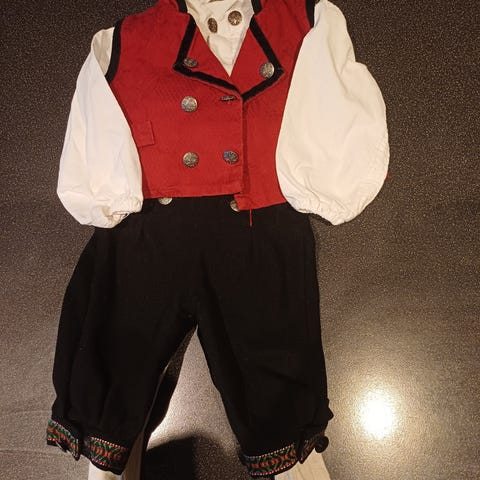 Selger ny hjemmestrikket Vestfoldbunad til gutt str. 2-4 år, strikket i Raumagarn babyull.