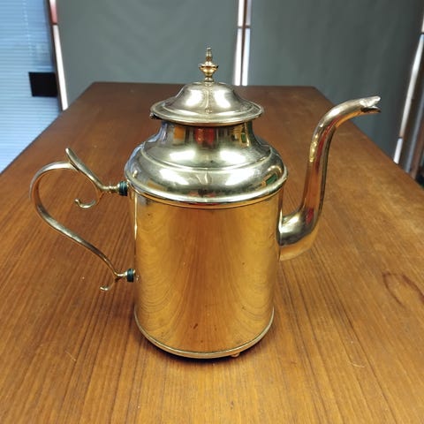 Hel og pen aluminium kaffekjele, ser ut som kobber.