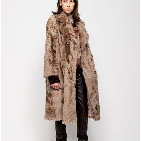 Nydelig pelskåpe i merinolam med blårev krave fra Amoress.