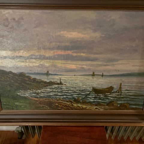 Denne har vært i stuen til min mor siden 50 tallet.. Usikker på hvor den ble kjøpt. Rammen er antageligvis verdt mye mer enn selve bildet.