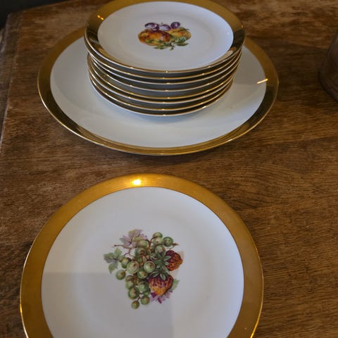 Stavanger flint "rokokko" 14 dessert skåler+ 1 fat