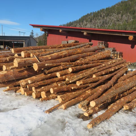 Grove stokkar av Gran og Furu selgast til laft og takåsar eller villmarkspanel . Ved interesse ta kontakt på telefon , ikkje e-post .