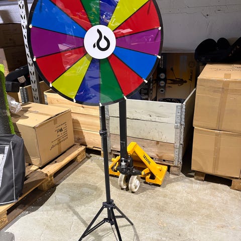 Vi produserer lykkehjul med ditt eget design. Vi kan også utvikle designet for deg. Lykkehjulet er 90 cm i diameter. Regulerbar høyde opp til ca 2 m. Lykkehjul folieres med 4 fargers trykk i ditt eget design og lamineres deretter for ekstra beskyttelse. Fritt valg i antall felter.