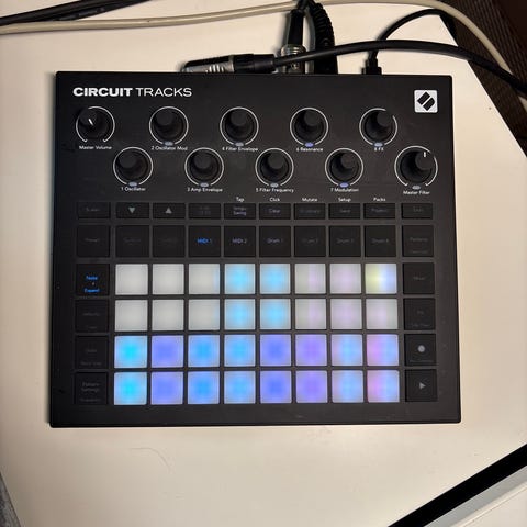 Circuit is designed to inspire. Two Novation polysynths and a four-part drum machine, combined with an intuitive grid-based sequencer in a standalone box that will have you making electronic music in minutes. Hit some pads, tweak the knobs and your track will start to emerge, all locked in time and key. Play around with effects, patterns and sounds in real time, to produce your track, brimming with fat grooves and beats.