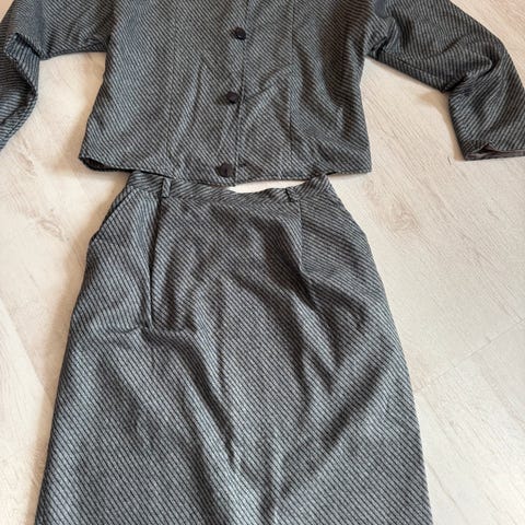Baumler pinstriped mørk dress, str 25, ren ull selges rimelig