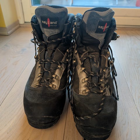 Pent brukte Kayland spikersko selges. En glidelås er ødelagt, men det er snøring i tillegg, så det er ingen fare. Hælkrok følger med.