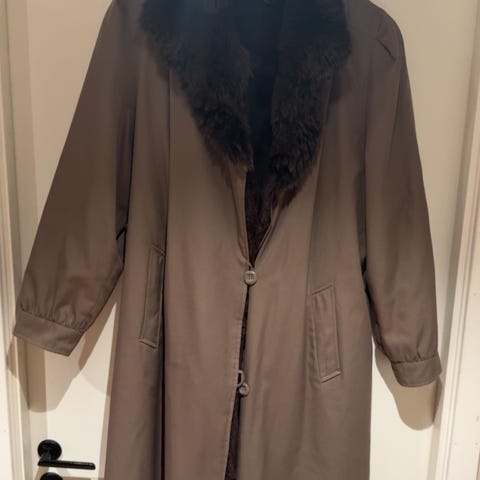 Ukjent merke brun kåpe med hette for dame i størrelse S. Kåpen har en myk tekstur og er i en dyp brun farge. Den er utstyrt med knapper foran og har en komfortabel passform. Passer godt til kjølige dager.
