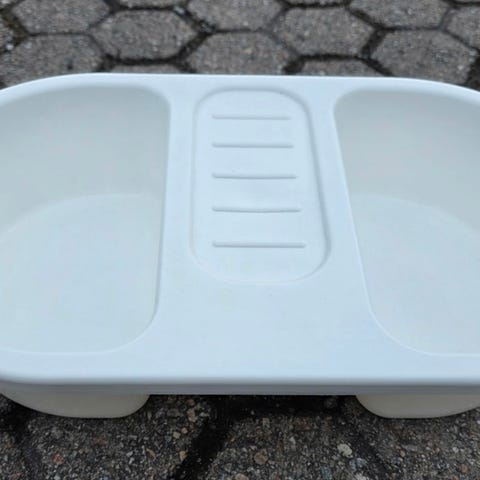 Det har to rom for vann og plass for såpe / klut.