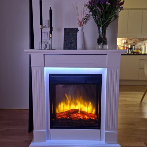 Fin og moderne elektrisk peis med egen fjernkontroll fantastisk til hus dekorasjon kjøpt i fjor for kr 4500,- brukt kun i tre måneder selges nå for bare 1800 pga flytting.