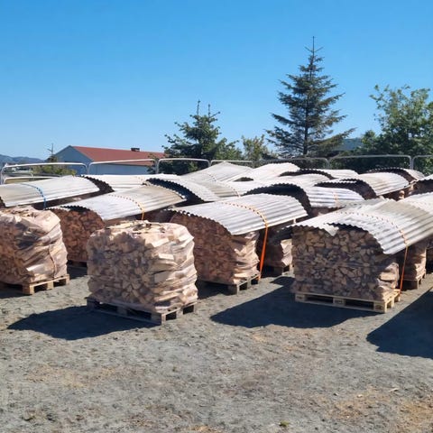 Tørr blandingsved 1000 kr per 1000 liter sekk på palle.