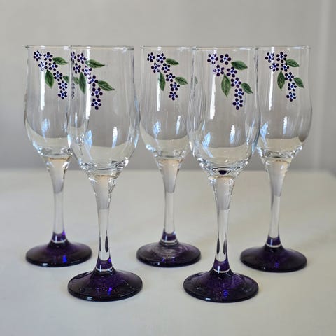 2 stk. Hvitvinsglass med stett: Høyde 24 cm, diam. 6 cm