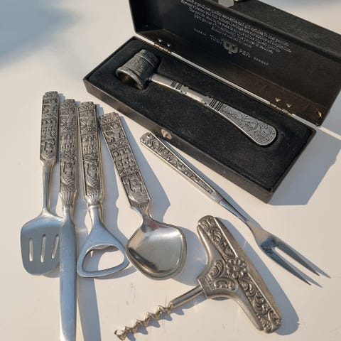 Samling. Ulike Norsk tinn, sølvplett osv.
