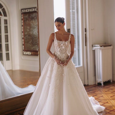 Pronovias er et kjent Barcelona-basert merke for brudekjoler og selskapsskjoler. De har kjolen for bruden som ønsker seg litt mer. Kjolen jeg selger heter Leire, den har en nydelig "sweetheart neckline" og perlebroderier på livet. Skjørtet er av tyll og nylon og har en flatterende havfruefasong.