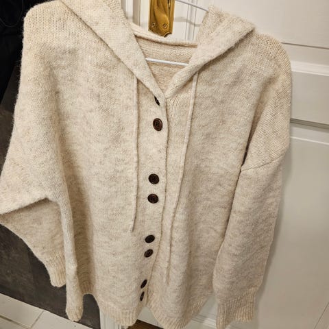 Ubrukt strikket hettejakke str. S selges for 200kr. Kan sendes mot at kjøper betaler 80 ekstra til porto