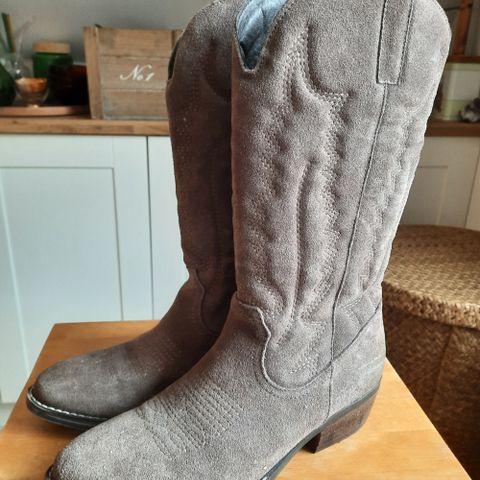 Lekre, sorte Cowboy skinnstøvler merke B&Co med gummisåle selges kr 799,- + porto.