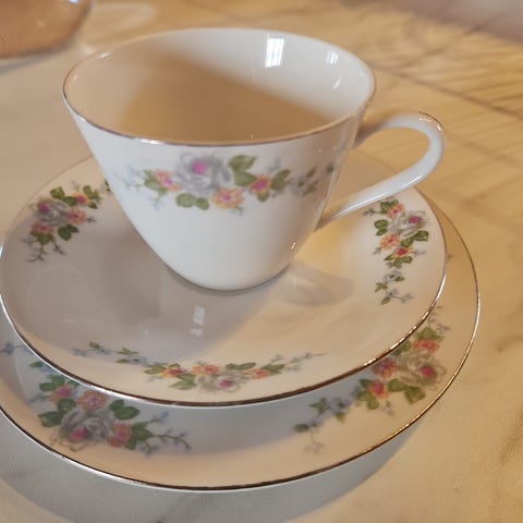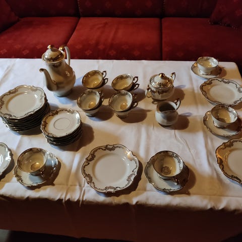Vakkert porselen: Kaffeservice til 7, med sølvkant