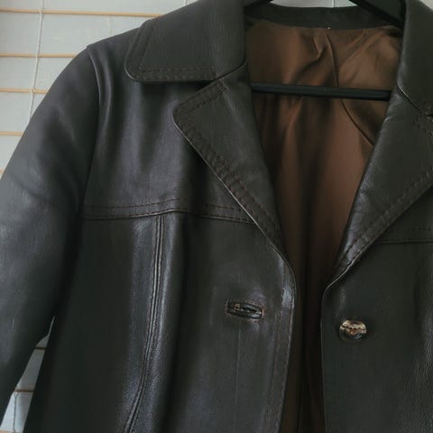 Meget spesiell vintage fransk skinnjakke, one of a kind. Superbehagelig vinterjakke – god og varm i kulda.
