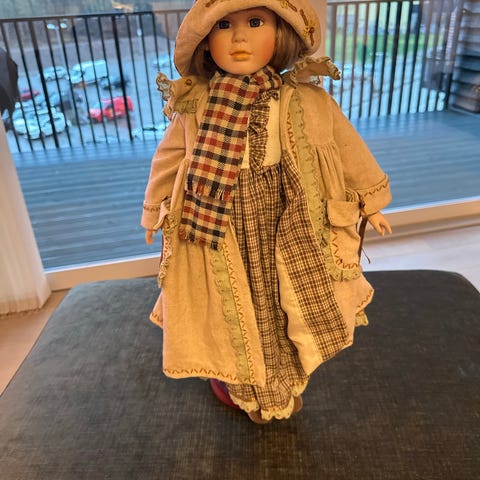 Liten gutt med utseende fra eldre tider. I tekstil og tungt materiale. Intakt og hel i tøyet. 20 cm lang. Prisen inkluderer emballasje, men ikke porto.
