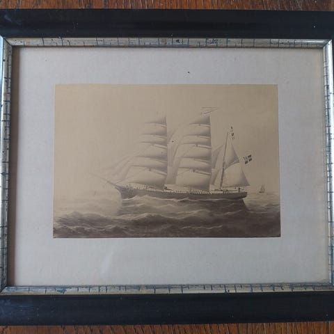 Selger en rekke flotte reproduksjoner av gamle skute bilder.