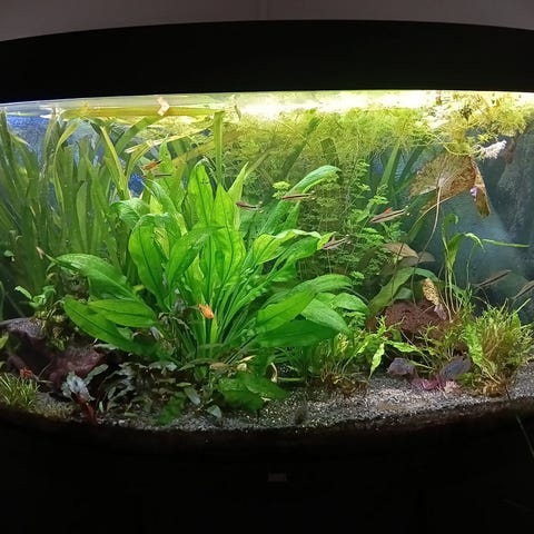 Juwel Trigon 190L med skap og utstyr. Stått i bod de siste 5 årene, så trenger en grundig vask og muligens nye pumpefilter før det tas i bruk. Ellers helt og fint i glass og møbel, flott akvarium. Nypris i dag ca 9000kr