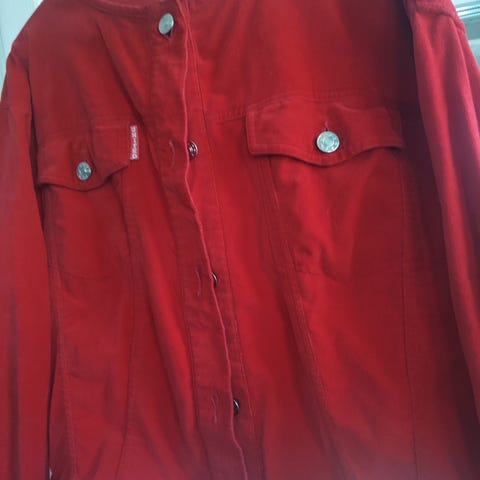 Set i rødt farge bukse+shjorte .Selges til 150kr + porto ellers kan hentes i Svelvik eller Drammen.