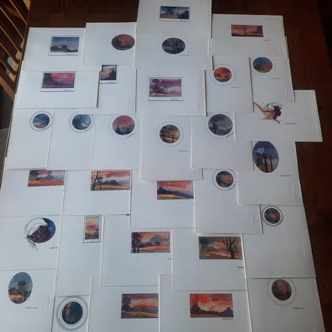Du kan kjøpe alle 7 kr. 2800, så blir kr. 400 per maleri.