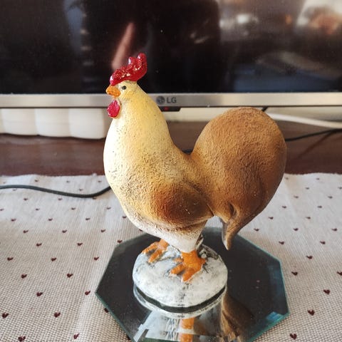 Fin eldre påskehane m/ ekte fjær...ca. 18 cm. høy. I god stand etter alder...
