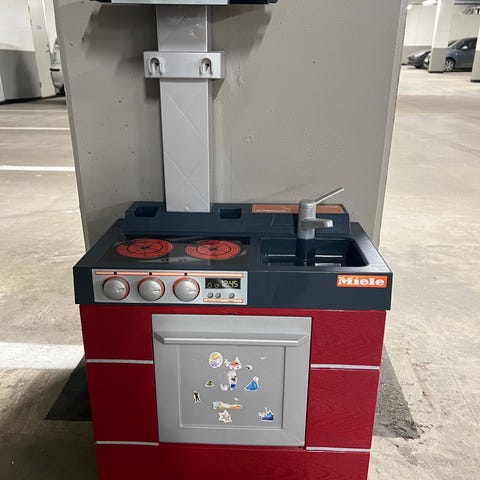 Lekekjøkken i sterk papp for å sette sammen, fargelegge (med fargestifter, tusj eller maling) og leke med. Ovnsdøra kan åpnes. Ny i original emballasje, kjøpt på www.caspeland.no