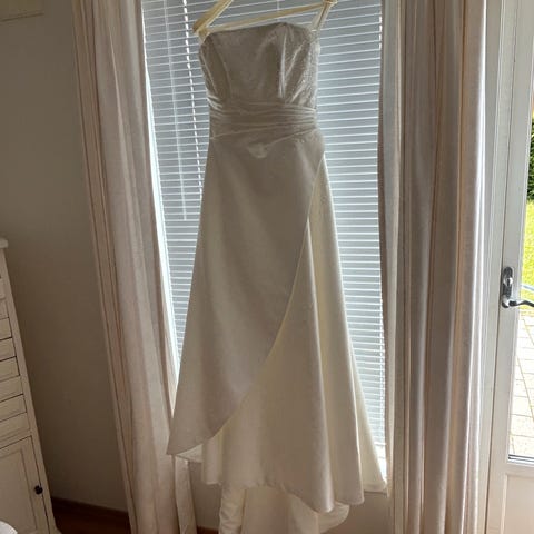 Pronovias champagnefarget 2003-modell, korsett med perlebroderi og slep. Str Small.