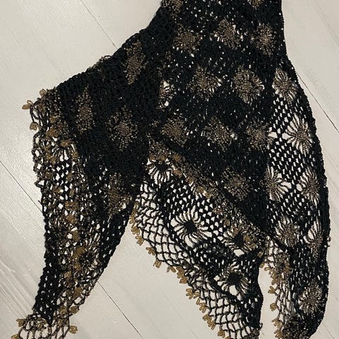 Selger et pynte-skjerf i svart videre. Kledelig til kjoler og andre pene antrekk. Hentes på Alexander Kiellands plass, kan evt. sendes mot at frakt dekkes.