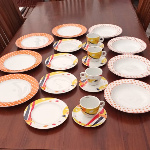 Har er servise m farger, det er brukt en del før, men nå blir bare stående i skapet.