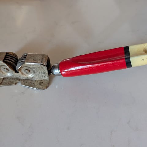 Gammel deigskjærer / pizzaskjærer i messing. 16 cm lang.