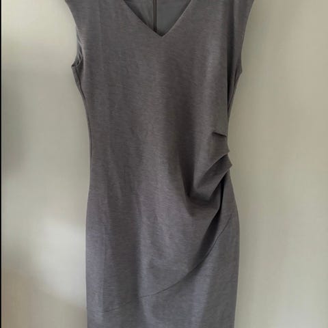 Festkjole i størrelse s. Kjolen er grå og har et elegant design. Egnet for festlige anledninger.