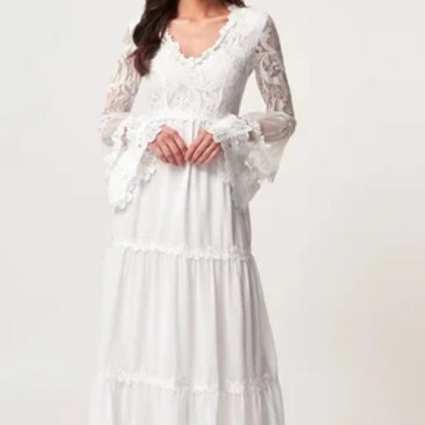 Jeg selger min vakre brudekjole, som kun er brukt en dag. Jeg var spesielt fornøyd med den elegante midjen jeg fikk i kjolen, takket være det innebygde korsettet.