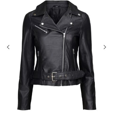 Høy kvalitet og moteriktig skinnjakke i Ane Mone. Sort og stilig med flotte detaljer. Helt NY~ selges pga størrelsen er for stor for meg.