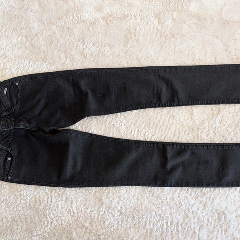 Har gått opp i buksestørrelse, selger derfor denne fine nye Nudie jeans i str 24/30. Farge svart. Kjøpt for 899 kr, selger for 180 kr.