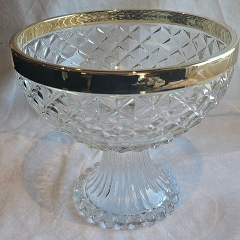 Salat-bolle utført i glass med metallkant. Mål ca D 23 cm H 14 cm