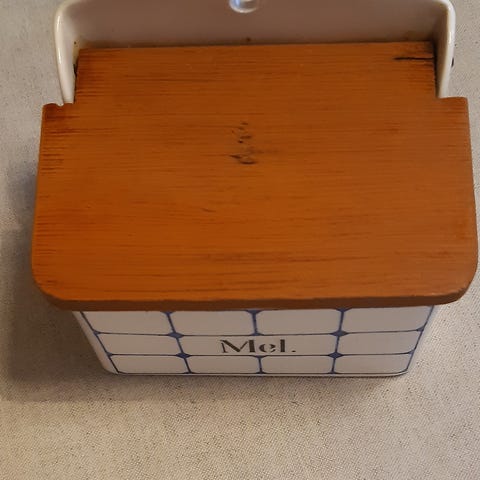 1) En lite brukt sildekrukke med løst lokk, H 13 cm og indre diameter 10 cm, selges for kr. 100,-. SOLGT.