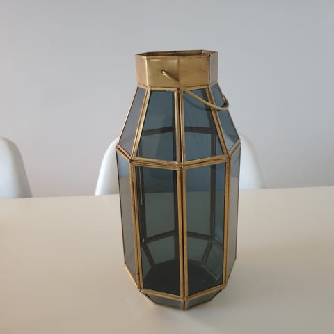 "Shabby chic" lyslykt med siselert stråmønster i glasset.