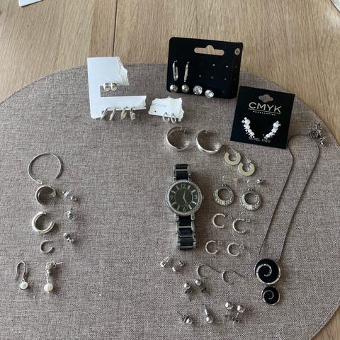 Lot med flotte smykker, klokker og ørepynt selges samlet kr 1000,-