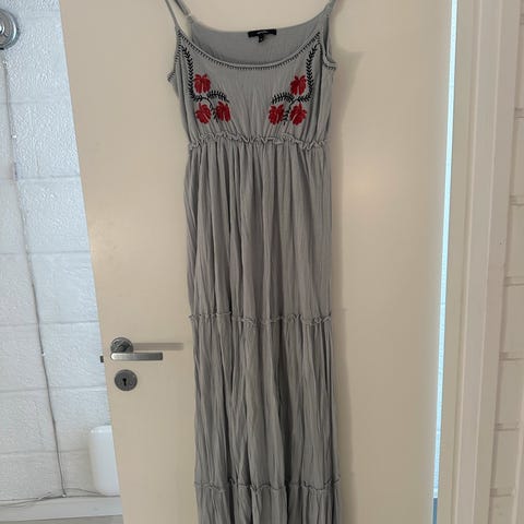 Sommerkjole kjøpt men aldri brukt. Str 38 med strech rett under brystet på midjen. Passer de fleste størrelser pga vide formen og strikken rundt livet. Gravidkjole kan den også brukes som:)