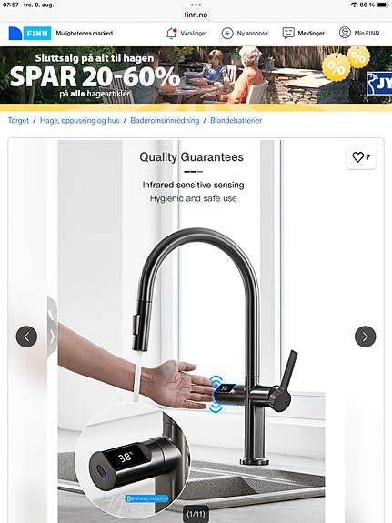 Ny kjøkken kran med sensorbryter og LED temperaturdisplay