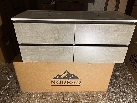 Norbad 120 cm baderomsinnredning med dobbelt servant grå