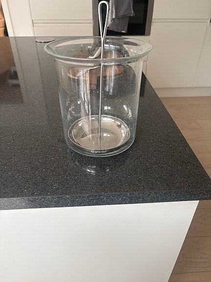Nespresso Vertuo kaffemaskin med glasskanne og kopper