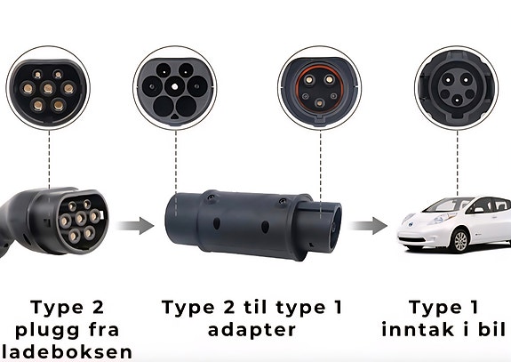 Lade adapter fra type 2 til type 1, ladekabel