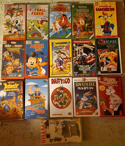 Barnefilmer på VHS.