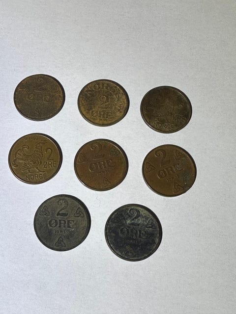 Norge samling mynter 1 øre 2 øre 5 øre