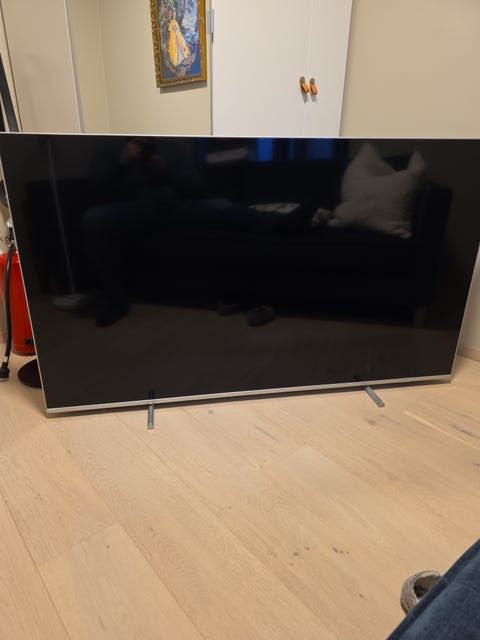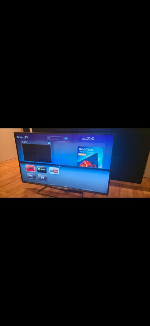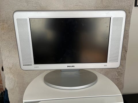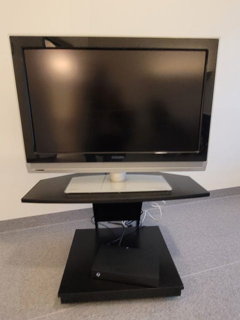 Phillips TV med svart stativ.
