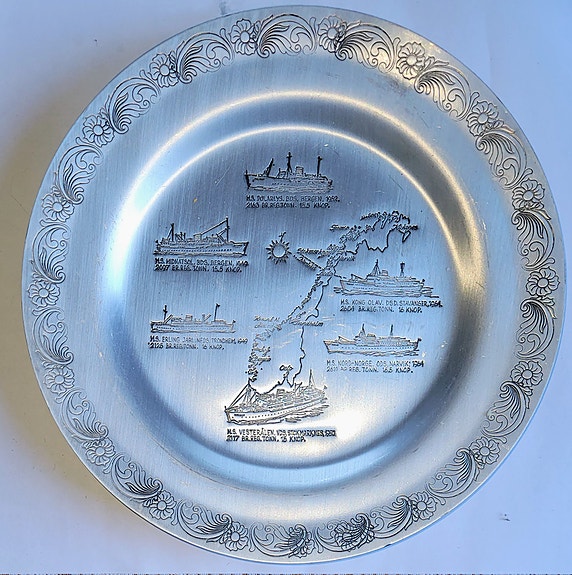 Tinnfat med motiv av de gamle hurtigrutene